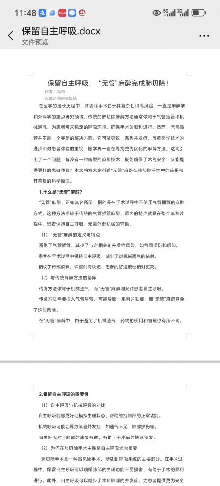 保留自主呼吸,“无管”麻醉完成肺切除!